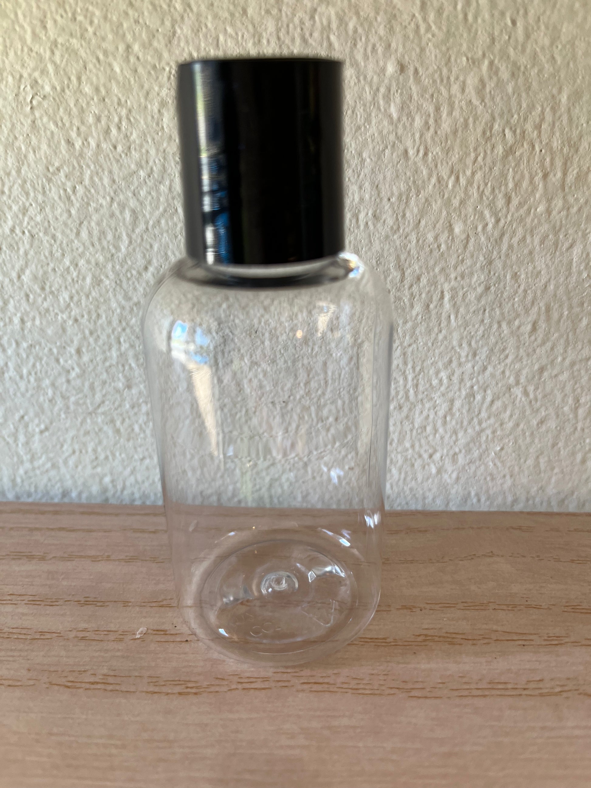 Tamaño de 2 oz . Plástico PET. Tapa varía de color según la disponibilidad. 20 botellas con sus tapas .
