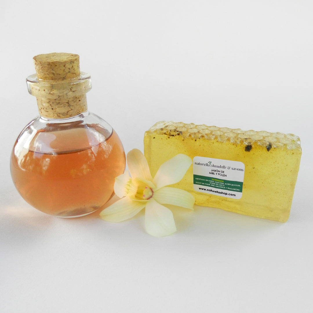 Contiene miel 100 % natural, polen, entre otros ingredientes que ayudan a aliviar condiciones en pieles delicadas que necesitan atención particular cuyas necesidades no se logran saciar con los jabones comerciales.